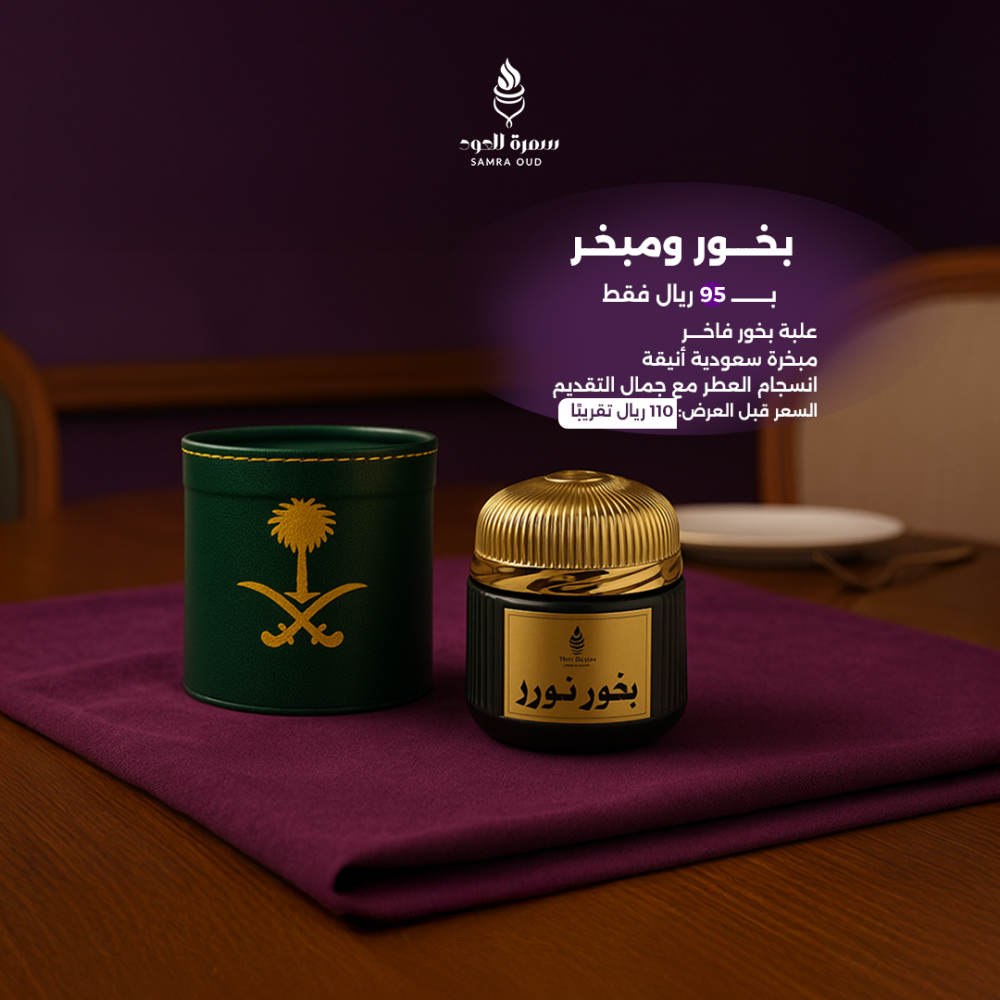 اطلب الآن عرض بخور ومبخرة من متجر سمرة للعود، واستمتع بأفضل خصومات اليوم الوطني!